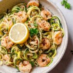 Serve the shrimp and zoodles in individual deep bowls for a rustic approach, or plate them neatly twirled into nests on flat plates for an elegant touch. Adding edible flowers or microgreens can also bring a pop of color that’s sure to wow your guests.