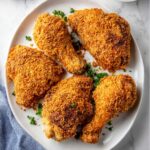This Air Fryer Fried Chicken recipe delivers crispy, flavorful chicken thighs or drumsticks without the extra oil from traditional frying. Marinated in spiced buttermilk and coated with a crunchy cornflake crust, this healthier take on fried chicken cooks quickly in the air fryer for a juicy, tender interior and golden, crispy exterior.