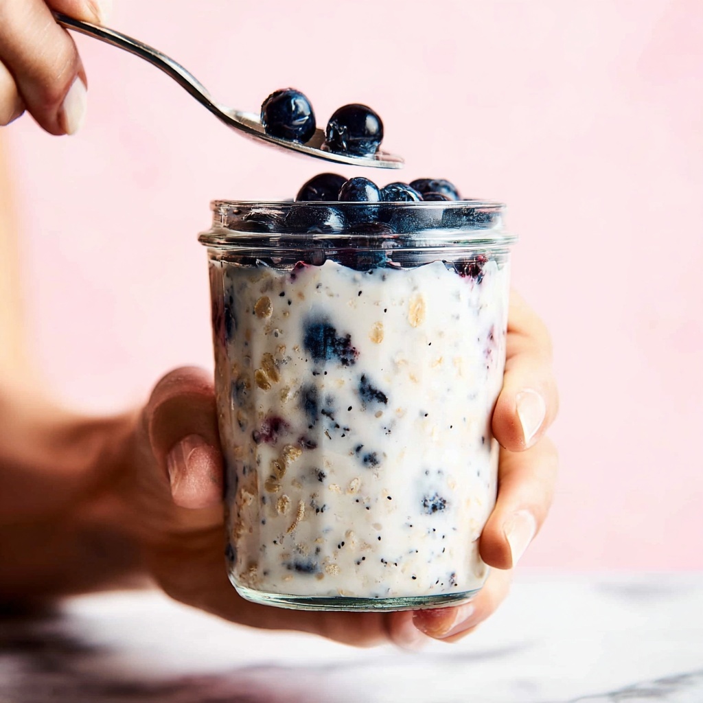 Enhance your Almond Blueberry Overnight Oats Recipe by topping it with extra fresh blueberries, a sprinkle of chopped almonds for crunch, or a drizzle of honey for added sweetness. A few fresh mint leaves can also add a pop of color and a refreshing twist.