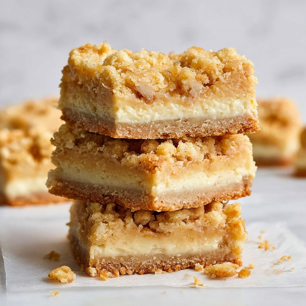 For a fun twist, serve slices of these Apple Pie Bars Recipe on small wooden boards or charming dessert plates adorned with fresh apple slices and cinnamon sticks. Wrapping individual bars in parchment paper tied with rustic twine makes a delightful gift or picnic treat.