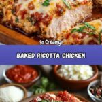 Baked Ricotta Chicken is a flavorful and comforting dish featuring tender chicken breasts topped with a creamy ricotta mixture, rich marinara sauce, and melted mozzarella cheese. This easy-to-make recipe combines Italian-inspired herbs and cheeses, baked to perfection for a cheesy, saucy main course that pairs wonderfully with pasta, salad, or roasted vegetables.