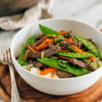 - Serve: Remove from heat and serve the beef and vegetables immediately over a bed of hot white rice. Garnish with sesame seeds or diced green onion if desired for extra flavor and texture.