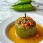 This Beef Stuffed Bell Peppers recipe features tender bell peppers filled with a savory mixture of lean ground beef, cooked white rice, grated carrots, fresh tomatoes, and aromatic herbs. The peppers are briefly boiled to soften, then combined with a flavorful seasoning blend and topped with a tangy tomato sauce enriched with sour cream. Perfect as a hearty, comforting main dish, this recipe yields 10 stuffed peppers, ideal for family meals or meal prepping.