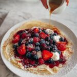 - Add toppings and serve: Top the stacked crepes with fresh mixed berries, a dollop of yogurt if using, and a drizzle of honey or maple syrup. Serve immediately for optimal flavor and texture.