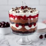 This Black Forest Trifle is a decadent layered dessert combining rich devil’s food cake, creamy chocolate pudding, luscious cherry pie filling, and fluffy homemade whipped cream. Garnished with fresh cherries and chocolate curls, it’s perfect for parties and gatherings, serving 16 people with a stunning presentation and irresistible flavors.