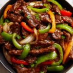 Start by tossing those thin steak slices with 1 teaspoon of freshly ground black pepper and a pinch of salt. This simple seasoning step is key—it ensures the beef is already flavorful before it hits the pan, allowing the pepper to sneak deeply into the meat’s fibers.