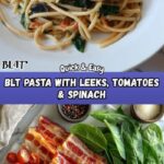 Try serving this BLT Pasta with Leeks, Tomatoes, and Spinach Recipe family-style in a large rustic bowl to encourage sharing and conversation. For a more elegant touch, twirl the pasta into neat nests on individual plates and garnish with microgreens or edible flowers for a stunning visual effect that wows your guests.