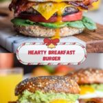 If you have a hearty appetite in the morning and crave something comfortingly indulgent, this Breakfast Burger Recipe will be your new go-to. Combining juicy beef and savory pork sausage patties, topped with a perfectly cooked egg, crispy bacon, fresh tomato, and crisp lettuce all nestled in a toasted bagel, this recipe takes your standard breakfast to a whole new level. It’s a fantastic blend of flavors and textures that come together with simple ingredients to create an unforgettable morning meal.