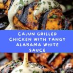 This Cajun Grilled Chicken with Alabama White Sauce recipe combines perfectly spiced, juicy grilled chicken breasts with a creamy, tangy Southern white sauce. The chicken is marinated and coated with a mixture of Cajun spices and grilled to perfection, while the Alabama White Sauce made from mayonnaise, apple cider vinegar, and spices adds a zesty and flavorful complement. Ideal for a quick, flavorful weeknight dinner or a summer barbecue favorite.