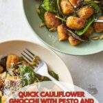 This light and flavorful cauliflower gnocchi with pesto is a quick and delicious meal perfect for busy weeknights. The recipe features crispy pan-fried cauliflower gnocchi, vibrant pesto sauce, tender baby spinach, crunchy pepitas or walnuts, and a sprinkle of grated Parmesan cheese for a satisfying and nutritious dish.
