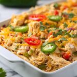 A vibrant and flavorful Chicken Fajita Casserole featuring sautéed bell peppers, onions, tender cooked chicken, and a blend of Mexican spices, layered with crispy corn tortillas and melted cheese. This easy-to-make dish is baked until bubbly and perfect for a comforting weeknight dinner.