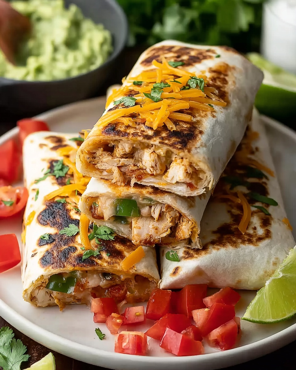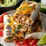 This Chipotle Ranch Grilled Chicken Burrito is a flavorful and satisfying meal featuring tender grilled chicken, seasoned rice, shredded cheddar, and crunchy tortilla strips, all wrapped in a warm flour tortilla and grilled to crispy perfection. The homemade chipotle ranch dressing adds a smoky, spicy kick that makes these burritos irresistibly delicious and perfect for lunch or dinner.