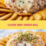 This classic Chipped Beef Cheese Ball is a creamy, savory appetizer perfect for parties and gatherings. Made with softened cream cheese, sharp white cheddar, finely diced dried beef, and seasoned with Worcestershire sauce and spices, this cheese ball is both flavorful and easy to prepare. It’s garnished with green onions and additional cheese and beef on the outside for an attractive presentation, making it a crowd-pleaser served with crackers.