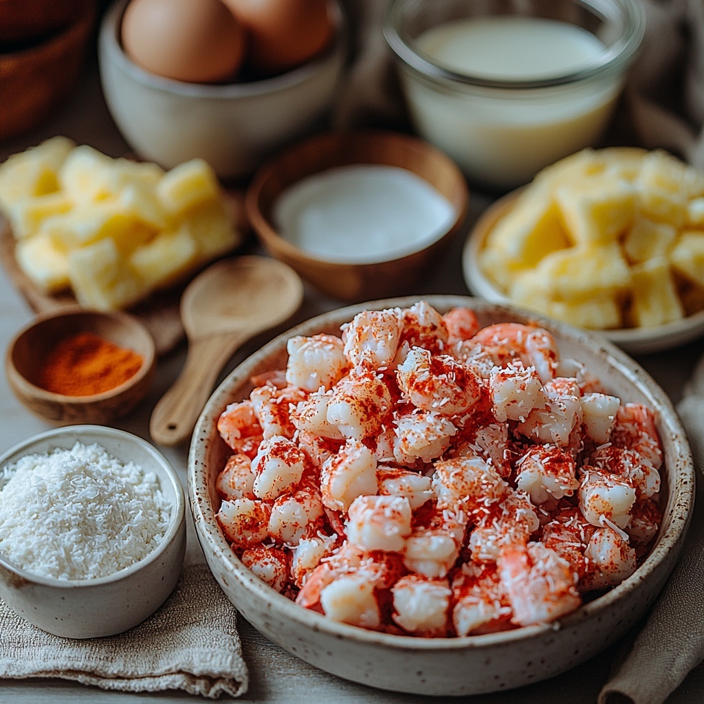 Creating this delightful Coconut Shrimp with Creamy Pineapple Dipping Sauce Recipe is surprisingly simple because every ingredient plays a key role in developing the dish’s vibrant flavor, texture, and color. From the sweetness of shredded coconut to the tangy brightness of crushed pineapple, each component works beautifully together to bring this recipe to life.