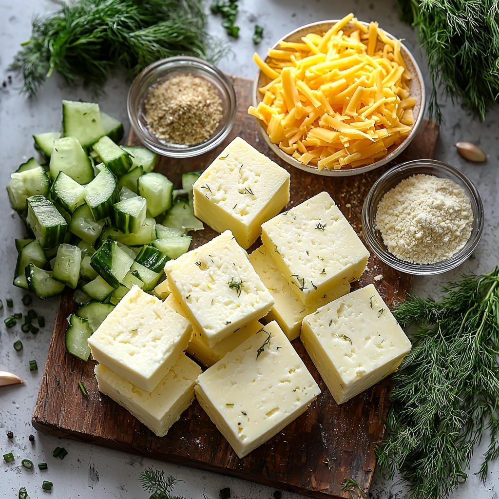 - Shredded cheddar cheese (1 cup): Adds sharpness and a rich melt-in-your-mouth cheesiness that contrasts perfectly with the pickles.