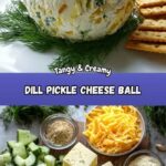 This Creamy Dill Pickle Cheese Ball is a tangy and flavorful appetizer perfect for parties and gatherings. It combines softened cream cheese, sharp cheddar, chopped dill pickles, and fresh dill, seasoned with garlic and onion powder, then coated with extra pickles and dill for an appetizing crunch. Serve chilled with your favorite crackers or fresh vegetables for a delicious, easy-to-make snack that guests will love.