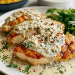 This Creamy Ranch Chicken recipe features tender boneless, skinless chicken breasts cooked in a rich and flavorful ranch sauce made with cream cheese, sour cream, and a seasoning mix. The chicken is first seared in a skillet for a golden crust, then baked in a creamy ranch sauce until perfectly cooked. It’s an easy, comforting dish perfect for a weeknight dinner served with your favorite sides.