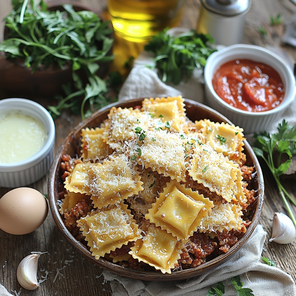 Sprinkling freshly chopped parsley and extra Parmesan over the fried ravioli not only adds vibrant color but introduces fresh herbal notes and rich, cheesy goodness. You might also try a pinch of crushed red pepper flakes for a little heat or a drizzle of balsamic glaze for a sweet contrast.