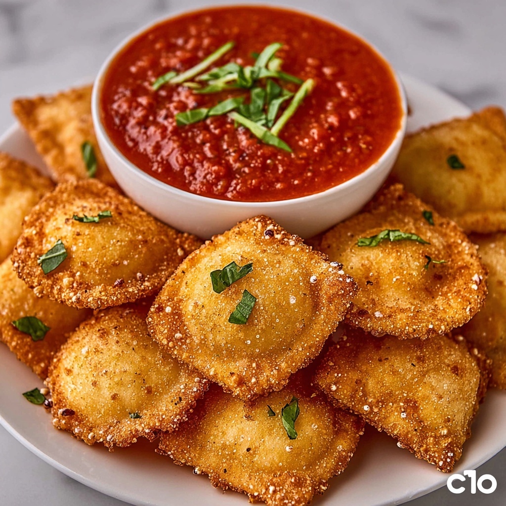 Crispy Fried Ravioli pairs beautifully with a crisp green salad dressed in lemon vinaigrette to cut through the richness. Garlic bread or a lightly dressed pasta salad also complement the dish well, rounding out the meal with varied textures and flavors that keep your palate delighted.