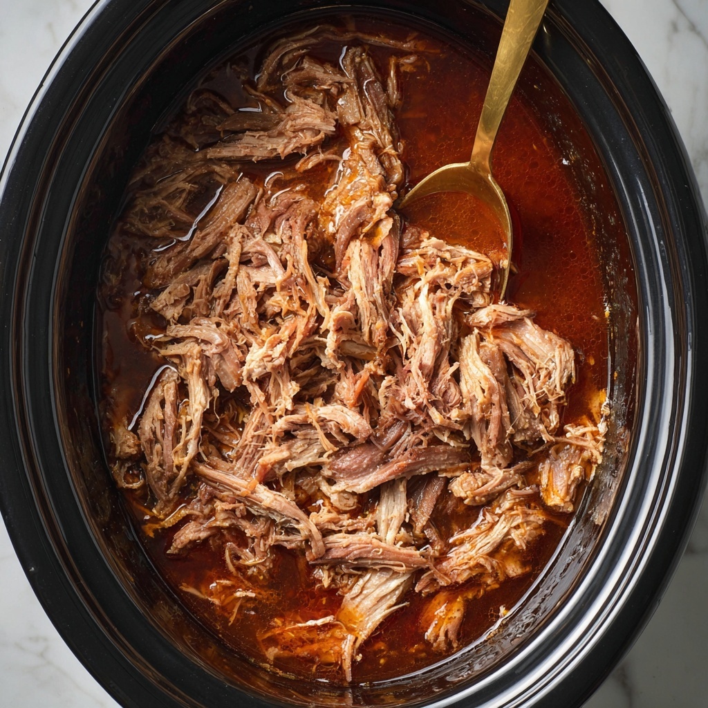 Once the pork is cooked, use two forks or tongs to gently shred it into bite-sized pieces right in the crockpot, soaking up all those delicious juices. This final step readies the dish for serving, and the aroma is absolutely irresistible by this point.
