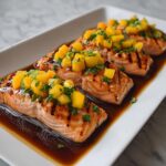 This Easiest Mango Teriyaki Salmon recipe combines tender, juicy salmon fillets with a sweet and tangy mango teriyaki glaze, creating a flavorful dinner that’s quick and simple to prepare. Perfect for a weeknight meal, the dish features a vibrant tropical twist with fresh mango and herbs, balanced by savory teriyaki sauce, seared to perfection for a deliciously moist and tasty finish.