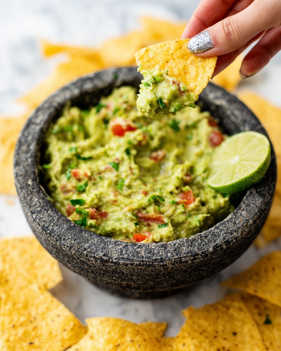 This easy guacamole recipe is a fresh and flavorful Mexican classic perfect for entertaining or as a healthy snack. Made with ripe avocados, tangy lime juice, fresh cilantro, and a touch of spice from jalapeño, it can be prepared quickly using a simple bowl or traditional molcajete method for added authenticity.