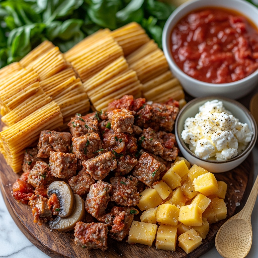 - Mild Italian sausage: Contributes a subtle spice and juicy texture to the meat sauce.