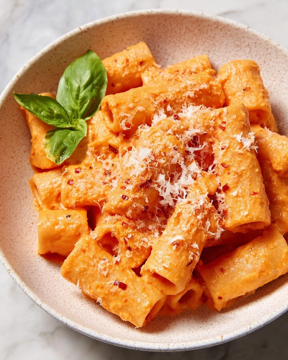 For a special occasion, serve this pasta in shallow, wide bowls to showcase the sauce’s beautiful pink hue and vibrant textures. You can even add cooked shrimp or grilled chicken on top to turn it into a heartier meal. For a cozy twist, try layering the pasta in a casserole dish with extra cheese and bake it briefly for a bubbly, golden finish that everyone will love.