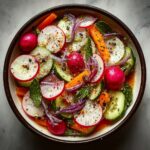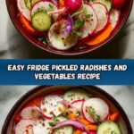 A quick and easy recipe for fridge pickled radishes and mixed vegetables, combining crisp radishes, carrots, cucumbers, and red onions in a tangy, flavorful vinegar brine. Perfect as a refreshing side dish, salad topping, or sandwich accompaniment, these pickles develop the best flavor after a few days in the refrigerator.