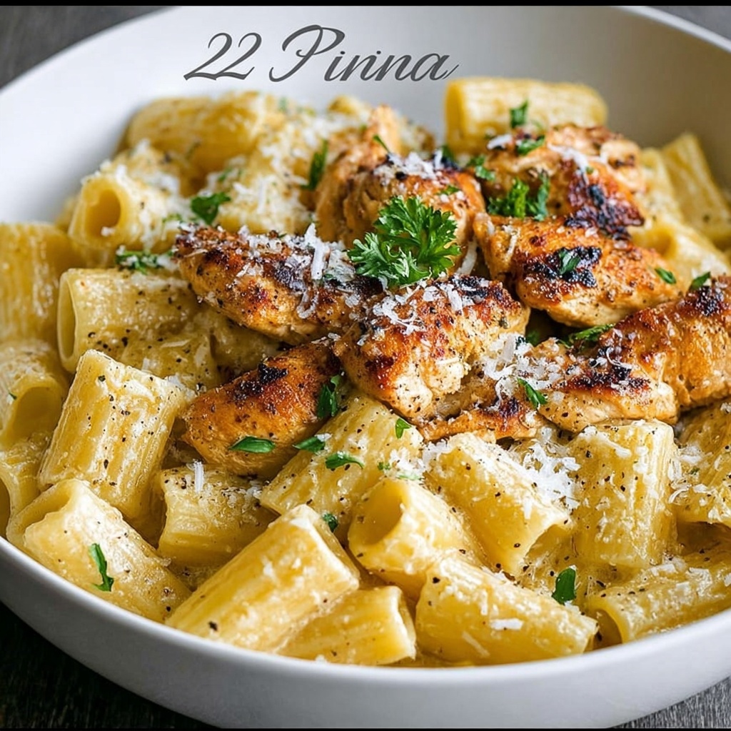 This Garlic Butter Chicken with Rigatoni and Parmesan is a creamy, comforting pasta dish featuring tender seared chicken breasts tossed in a rich garlic butter and Parmesan sauce. The rigatoni pasta is cooked al dente and combined with a luscious cream sauce, making it an ideal flavorful weeknight dinner or a cozy meal to share with family and friends.