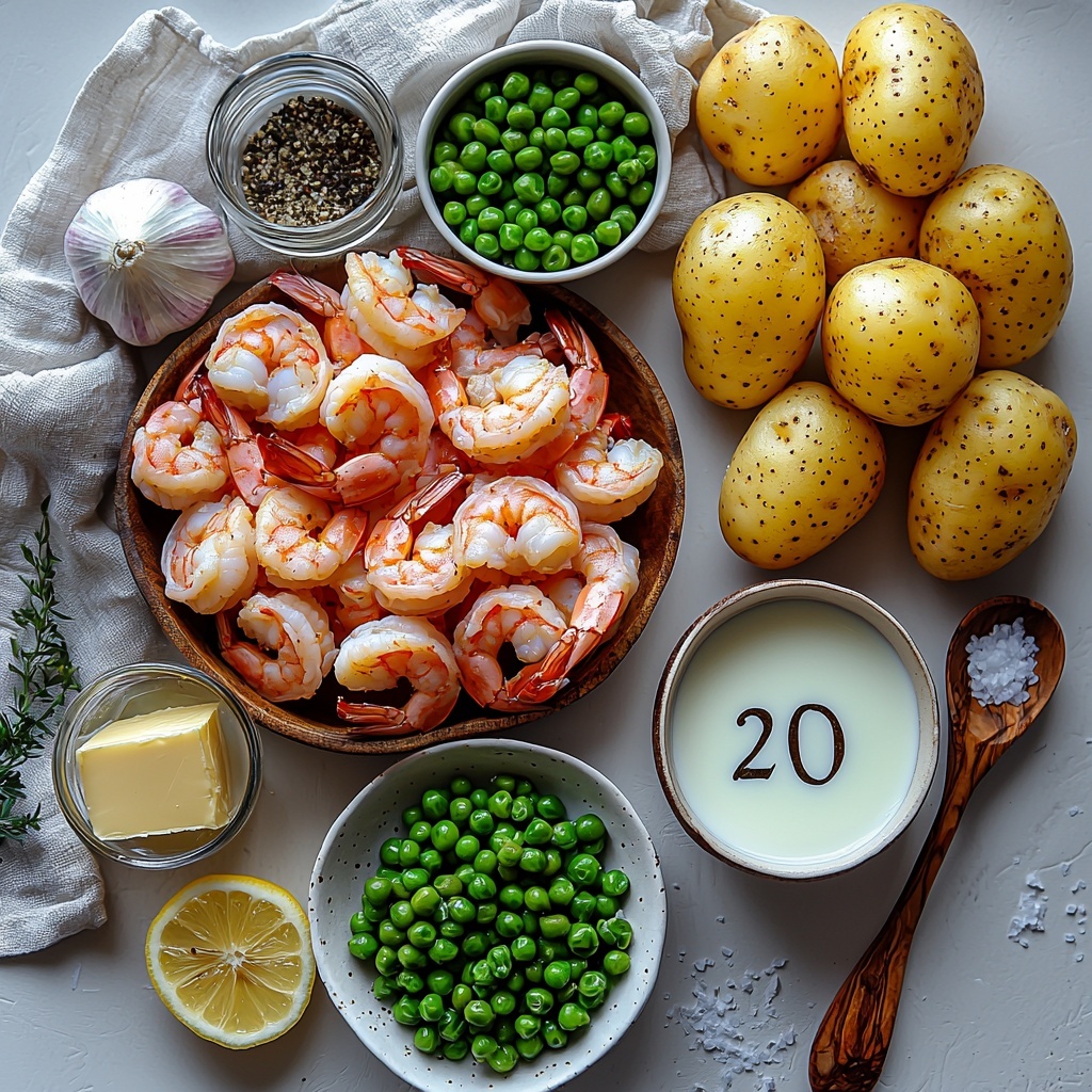 The beauty of this Garlic Butter Shrimp & Veggie Mash Bowl Recipe lies in its simple ingredients, each playing a crucial role in delivering those comforting flavors, smooth textures, and fresh pops of color. Here’s what you’ll gather to bring this bowl of yumminess to life: