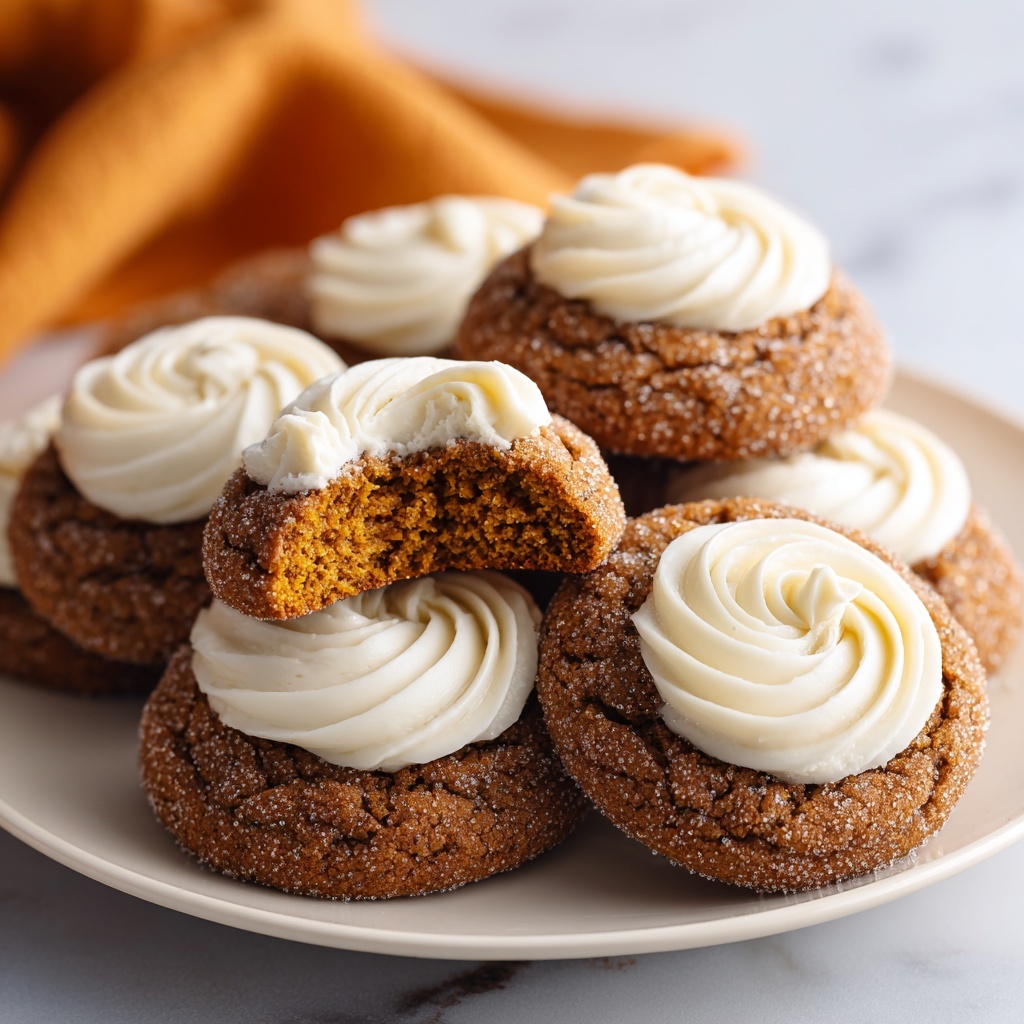These Gingersnap Pumpkin Pie Cookies combine the spicy warmth of classic gingersnap cookies with a creamy pumpkin pie filling. Perfect for fall, these soft and chewy cookies feature a gingery crust filled with a smooth pumpkin-spice mixture, topped with a dollop of whipped cream for a festive and delicious treat.