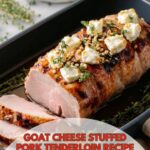This Goat Cheese Stuffed Pork Tenderloin recipe features a tender pork loin stuffed with a creamy mixture of goat cheese, sun-dried tomatoes, fresh basil, and garlic. The pork is butterflied, filled, seared to a golden brown in a skillet, then roasted to perfection in the oven for a juicy and flavorful main course.