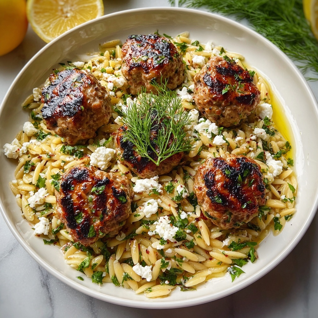These Greek Chicken Meatballs with Lemon Orzo are a flavorful and healthy dinner option featuring tender chicken meatballs infused with garlic, herbs, and lemon zest, served over a zesty, buttery orzo cooked in chicken broth and lemon juice. Finished with crumbled feta cheese and fresh dill, this dish combines bright Mediterranean flavors with comforting textures ideal for a family meal or elegant gathering.