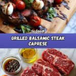 This Grilled Balsamic Steak Caprese is a flavorful and elegant dish featuring juicy grilled ribeye or sirloin steaks topped with blistered cherry tomatoes, fresh mozzarella pearls, fragrant basil leaves, and a tangy balsamic glaze. Perfect for a quick yet impressive meal, this recipe combines the richness of grilled steak with the fresh, vibrant flavors of a classic Caprese salad.