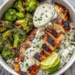 Begin with your base of cooked rice or quinoa in each bowl, then layer on the grilled chicken slices and broccoli florets. Drizzle generously with your creamy garlic sauce, adding a squeeze of fresh lime juice from the wedges for an extra burst of brightness. Your Grilled Chicken & Broccoli Bowls with Creamy Garlic Sauce Recipe is now ready to enjoy!
