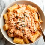 To elevate the dish visually and flavor-wise, sprinkle freshly torn basil leaves atop right before serving. A light dusting of grated parmesan cheese contributes a salty, nutty contrast that melds perfectly with the creamy tomato sauce.