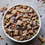 This festive Halloween Puppy Chow recipe features crunchy rice Chex cereal coated in a rich, creamy chocolate-peanut butter mixture and sprinkled with colorful Halloween sprinkles. It’s a quick, no-bake treat perfect for parties, snack time, or seasonal celebrations. The combination of chocolate, peanut butter, and sweet powdered sugar creates a deliciously addictive snack that both kids and adults will love.
