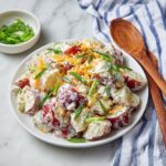 This Healthier Bacon Ranch Potato Salad is a delicious, lighter twist on a classic favorite. Made with red baby potatoes, crispy bacon, sharp cheddar, green onions, and a creamy yogurt-based ranch dressing, it’s perfect for picnics, BBQs, or as a satisfying side dish. The use of plain yogurt instead of mayonnaise keeps the dish fresh and lower in fat while maintaining rich flavor.