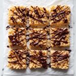 These Healthy Rice Krispie Treats are a nutritious twist on the classic snack, combining puffed rice, natural peanut butter, and pure maple syrup for a naturally sweetened treat. Finished with a drizzle of dark chocolate, they offer a delightful balance of crunchy texture and rich flavor without any baking required.