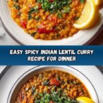 Hearty Spicy Indian Lentil Curry is a flavorful and comforting dish made with red lentils simmered in a blend of aromatic spices, tomatoes, and tangy lemon juice. This traditional Indian recipe offers a perfect balance of heat and earthiness, ideal for a nutritious vegetarian meal.