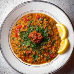 Hearty Spicy Indian Lentil Curry is a flavorful and comforting dish made with red lentils simmered in a blend of aromatic spices, tomatoes, and tangy lemon juice. This traditional Indian recipe offers a perfect balance of heat and earthiness, ideal for a nutritious vegetarian meal.