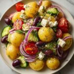 This refreshing Homemade Greek Potato Salad combines tender potatoes with vibrant vegetables, briny Kalamata olives, and tangy feta cheese, all brought together with a zesty olive oil and red wine vinegar dressing. Perfect as a side dish for summer barbecues or a light lunch, this salad is easy to prepare and bursting with Mediterranean flavors.