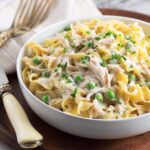 Egg noodles are preferred because of their texture and ability to hold onto the sauce, but you can swap in other pasta shapes like rotini or shells if that’s what you have on hand.