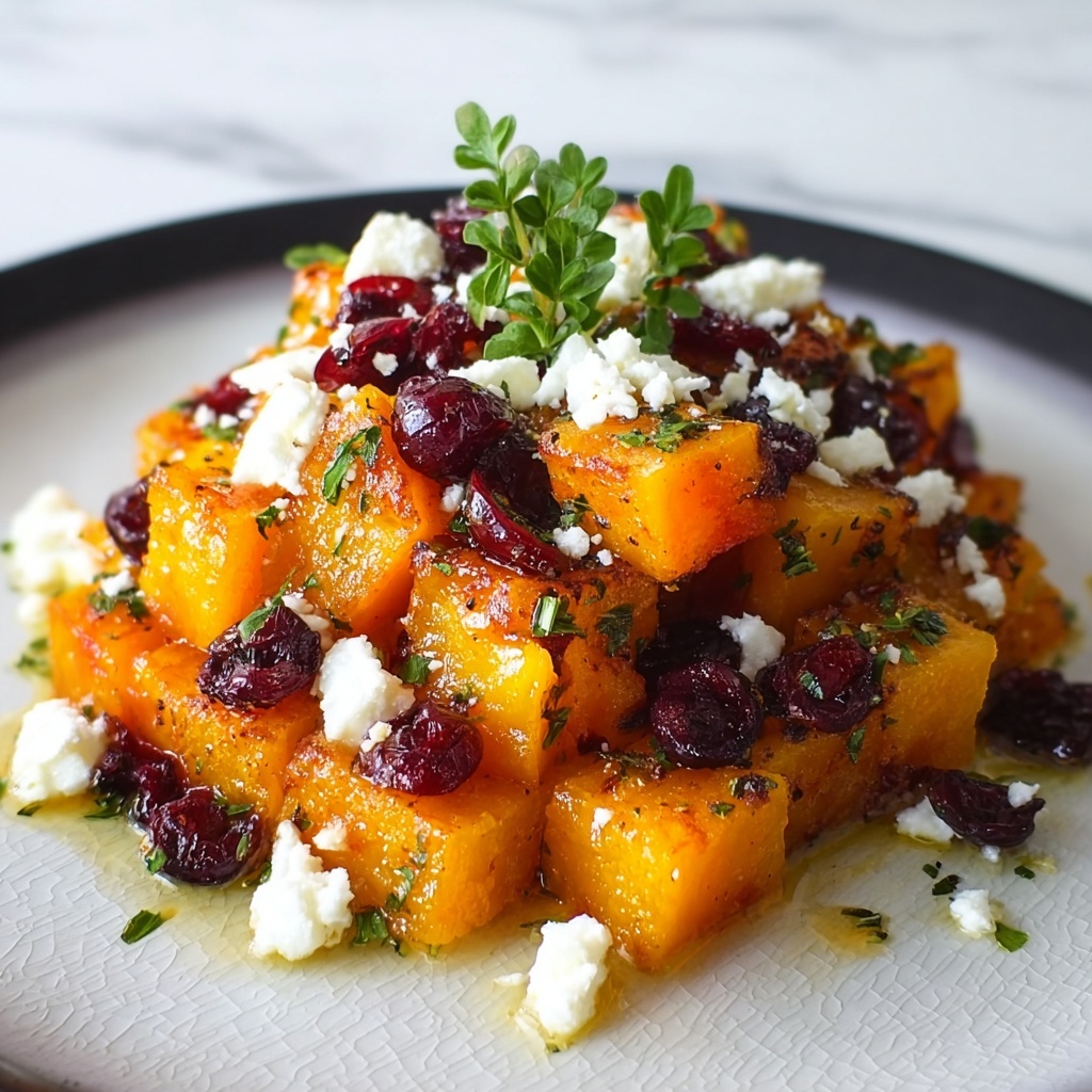 Honey Roasted Butternut Squash with Cranberries and Feta Recipe