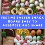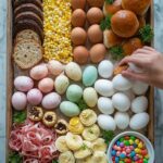 - Finish with small touches: Use mini candies and chocolate-dipped pretzels to fill in remaining spaces on the board, adding vibrant pops of color. Finally, place decorated hard-boiled Easter eggs and Easter-themed decorative items like figurines or faux grass to enhance the festive feel.