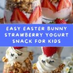 This Irresistibly Fun Easter Bunny Strawberry is a delightful and easy-to-make no-cook treat perfect for Easter celebrations. Made with fresh strawberries, creamy vanilla yogurt, and fluffy whipped topping, it is decorated with marshmallows, candy eyes, and a pink jellybean to create an adorable bunny face that kids and adults alike will love.