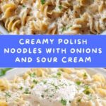 This simple and comforting Polish noodle dish features wide egg noodles tossed with sweet, golden sautéed onions and creamy full-fat sour cream. Perfect for a quick weeknight meal, it combines rich flavors and a luscious texture with minimal ingredients and effort.