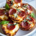 These Keto Pepperoni Pizza Bites are a delicious low-carb snack that combines a cheesy almond flour crust with savory pepperoni and a sugar-free marinara dip. Perfectly baked to golden perfection, they are a great keto-friendly option for quick appetizers or party treats.
