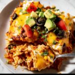 Top the rolled enchiladas with the remaining enchilada sauce, spreading it gently so the dish stays saucy and luscious. Generously sprinkle over the remaining shredded cheese. Pop your casserole into the preheated oven for about 25 minutes. You’ll know it’s ready when the sauce re-bubbles around the edges and the cheese turns golden and slightly bubbly. Once out of the oven, give it a few minutes to rest so the flavors meld and it cools slightly for easier serving.